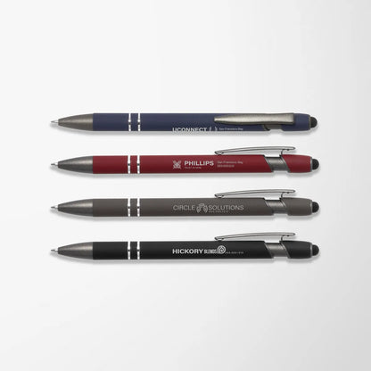 Give your business branding a polished edge by featuring it on this attractive promotional pen. The streamlined design swaps out the shiny chrome accents seen on the Alpha Pen, for a more muted and trendy gunmetal trim. Your custom logo or company name will be engraved into the matte, soft touch barrel to create a display that looks great and feels smooth. Hand out this pen to make a lasting impression with your customers.