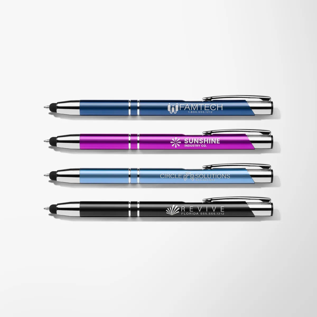 Just when you thought our Paragon Pen couldn’t get any better…we went ahead and added a stylus. This sleek Engraved Paragon Stylus Pen features flawless styling, smooth writing, and a capacitive stylus integrated at the tip. This means your clients and prospects can use it for notetaking and smartphone navigating—displaying your laser engraved messaging all the while.