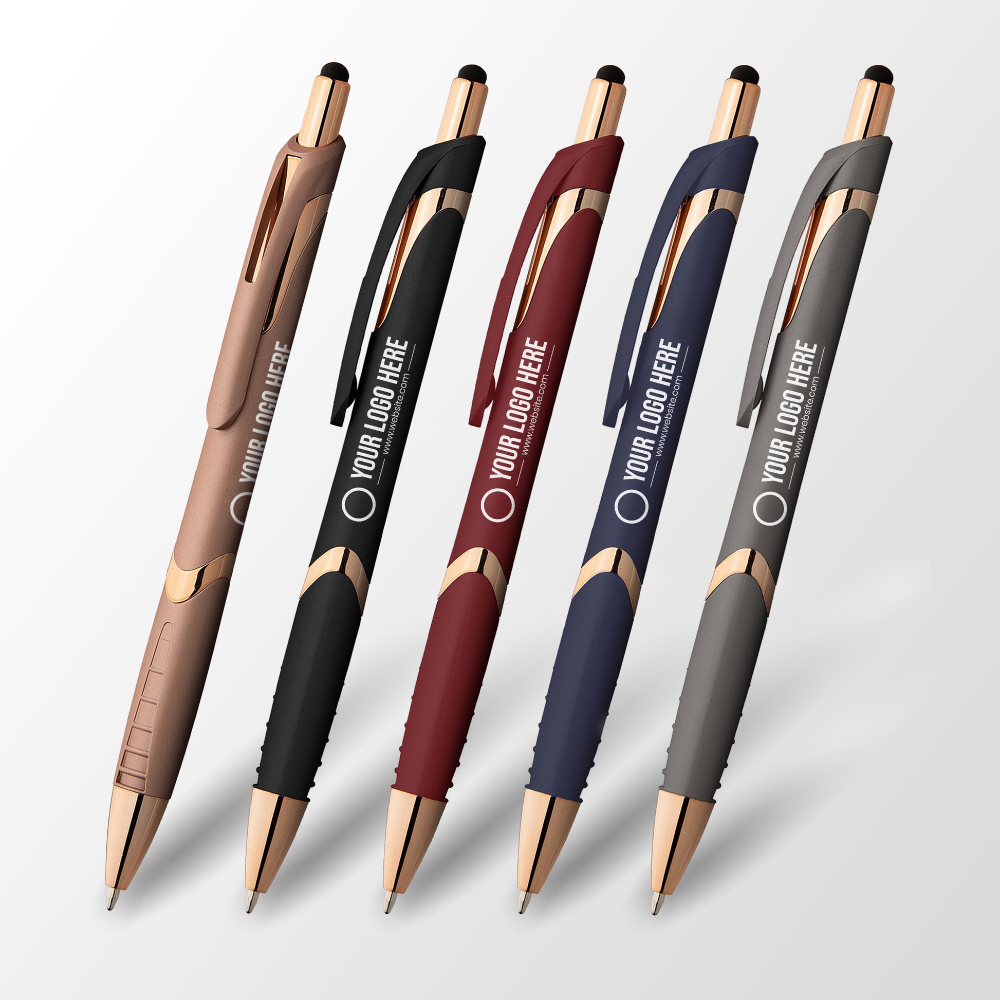 Presley Rose Gold Ballpoint Pen combines timeless sophistication with modern functionality, designed to elevate everyday writing into a luxurious experience. Crafted with a lustrous rose gold barrel and available in four refined finishes, this ballpoint pen merges elegance with versatility, perfect for professional settings, gifting, or personalized engraving. Its ergonomic design ensures smooth, effortless writing, while the premium materials reflect unmatched durability and style. Customize it with initials or logos to create a bespoke accessory that resonates with individuality. The Presley collection embodies luxury, offering a subtle yet striking statement piece ideal for commemorative events or corporate branding. Sleek, adaptable, and effortlessly chic, this writing instrument transforms routine moments into expressions of refined taste.