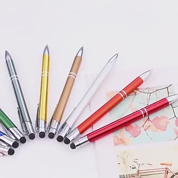 The Solara Metal Ballpoint Pen with Stylus redefines sophistication with its premium metal construction and integrated stylus, perfect for modern professionals. Its elegant design features a sleek aluminum barrel and satin-feel finish, ensuring both durability and a refined touch. The pen’s vibrant color options and custom engraving capabilities allow you to personalize it with your logo for enhanced brand recognition. Designed to impress, this pen offers a smooth writing experience while doubling as a practical stylus for seamless touchscreen navigation. Elevate your promotional strategy with this premium writing instrument, a true fusion of style, functionality, and professional elegance that is undeniably sophisticated.